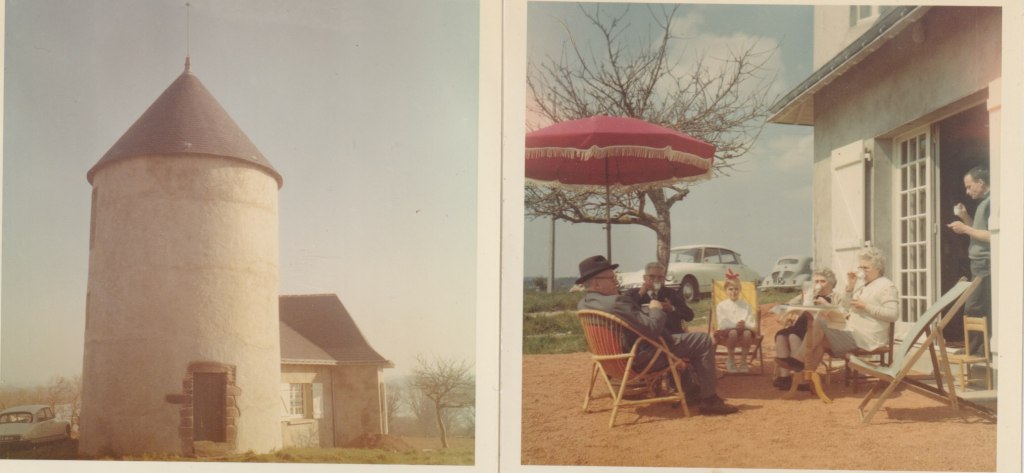 Au milieu des années 1960, mes parents sont à la recherche d’un point de chute à la campagne, non loin de Nantes, pour passer le week-end. Ils découvrent un moulin à vent à l’abandon, près de Redon, aux confins de la Loire-Atlantique, du Morbihan et de l’Ille et Vilaine. Le meunier, M. Ollivier, explique que le moulin à vent n’a pas tourné depuis 1939. La machinerie est en place, mais doit être démontée car elle occupe deux étages. Roger Barranger, l’ami architecte, dessine une extension, qui ajoute un grand séjour, une cuisine et une salle de bains. Les chambres sont dans la tour. Etrange sensation de dormir dans une pièce ronde. L’endroit est isolé, le village d’ Avessac est à trois kilomètres. Le terrain est grand, boisé, un vieux chêne fournit une cabane de Robinson, la Vilaine toute proche déborde l’hiver et transforme les marais en une immense étendue d’eau propice aux balades en barque. Mon grand-père René et les trois enfants s’activent aux travaux de peinture, dans la joie et la bonne humeur. Mais, en grandissant, nous souffrons de plus en plus de l’isolement et de l’ennui.